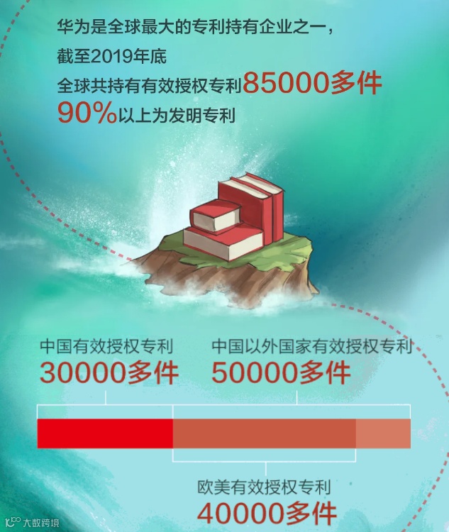 根据华为2019年年报,该公司2019年研发费用为1317亿元,近十年累计投入研发费用超过6000亿元,2019年研发投入占销售比重为15.3%;2019年全球从事研究与开发的人员约9.6万名,约占华为总人数的49%;中国以外国家有效授权专利多达50000多件,其中欧美有效授权达到40000多件。