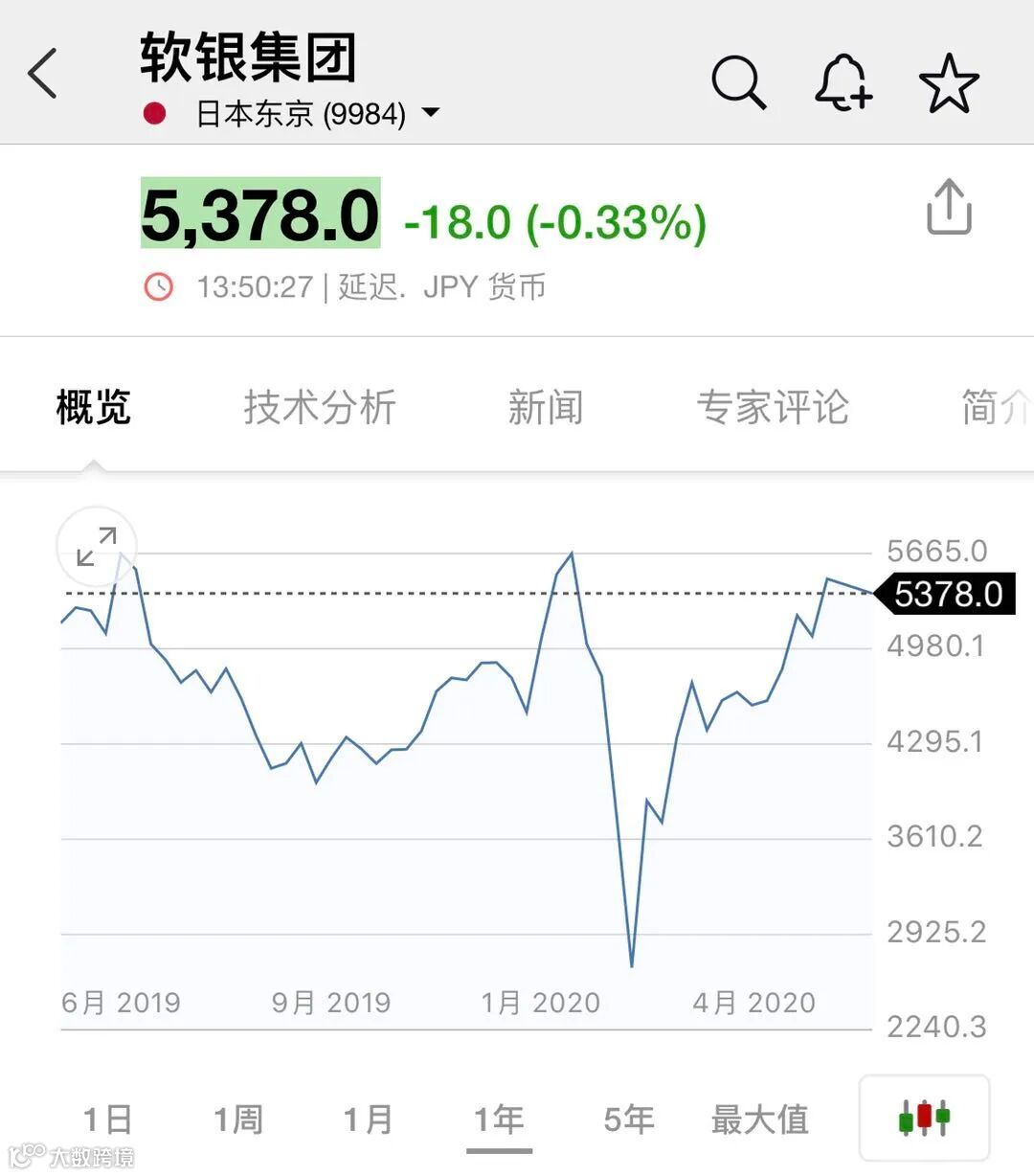 该回购计划宣布以后,软银股价开始回升,截至目前,股价涨幅已接近100%。