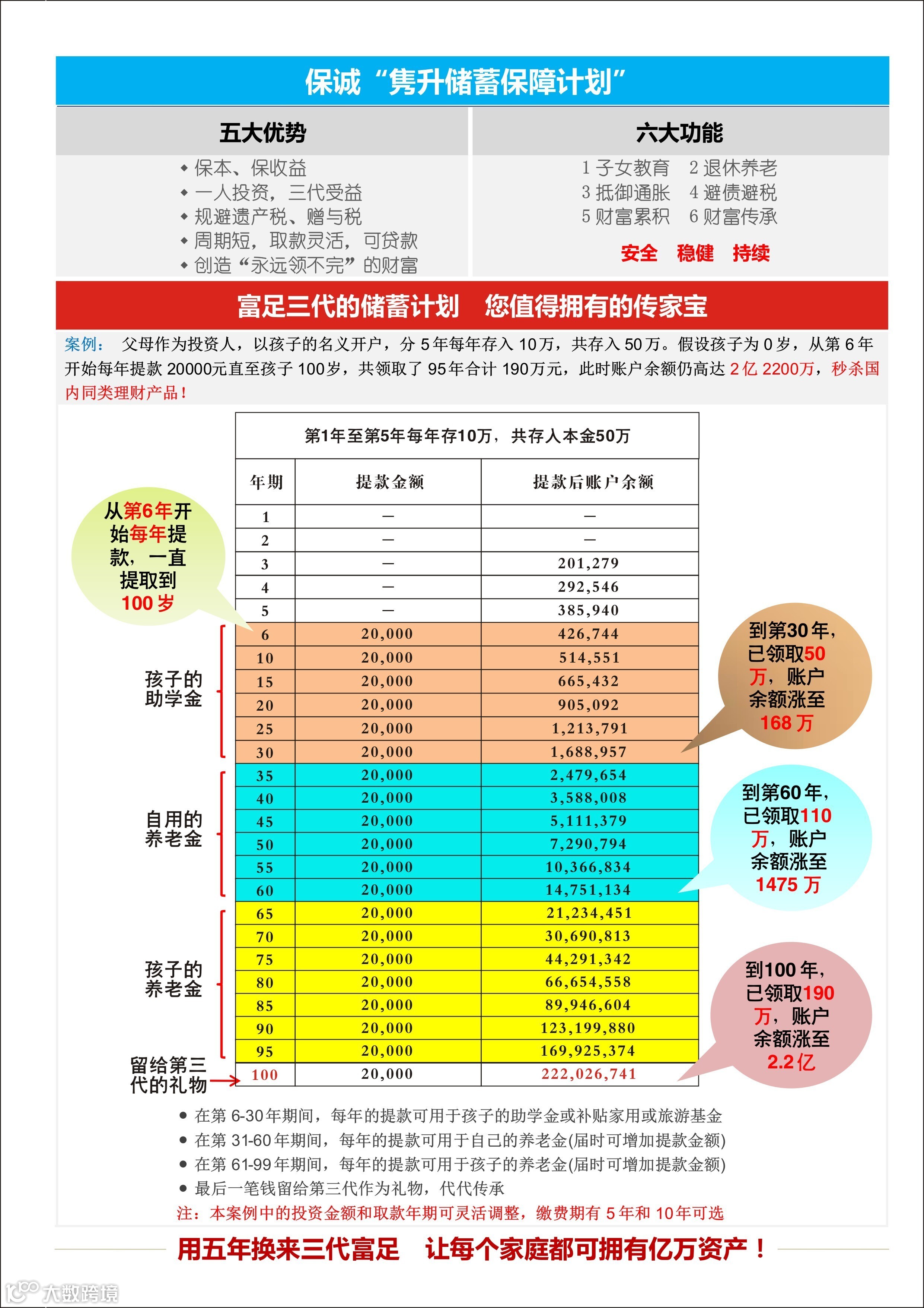 体面的退休生活必须经过周全及适时的策划,您的储蓄也是一样。您可能欠缺时间打理较长期的投资,因此英国保诚特别推出【隽升】储蓄保障计划,让您可于短时间内(5年或10年)将保费(最低5万港币起)缴付完毕以享全面的终身保障。计划更提供具竞争力的回报,助您轻松达成长远的理财目标。