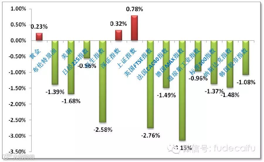 市场走势:美欧日发达国家股市大跌,仅A股上涨,铜、石油下跌,黄金微涨。