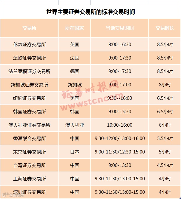 沪深两家证券交易所正常交易时间为4小时,在全球主要股票市场中最短。