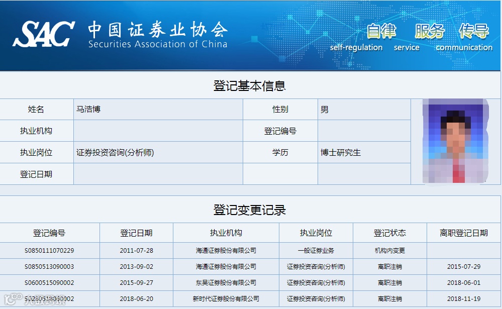 值得注意的是,涉事的两位分析师都比较年轻,马浩博为1983年10月出生,汤玮亮则出生于1983年9月,事情发生时两人都仅有33岁。中证协公示信息显示,马浩博在2018年6月离开了东吴证券,加盟新时代证券从事食品饮料研究,同年11月从新时代证券离职;汤玮亮则在2017年3月从东吴证券跳槽至中银证券,目前仍在从事食品饮料研究。