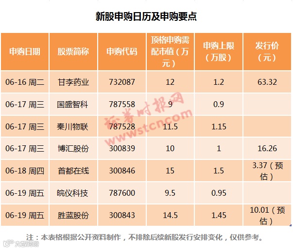 根据初步安排,本周将有7只新股申购,全部集中在周二至周五,发行的新股中,科创板和创业板最多,包括科创板3只(国盛智科、秦川物联、皖仪科技),创业板3只(博汇股份、首都在线、胜蓝股份)、主板1只(甘李药业)。