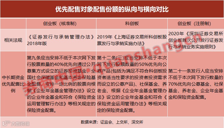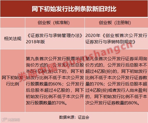 在过去核准制下创业板IPO网下配售中,上述比例依次为20%、40%、10%。