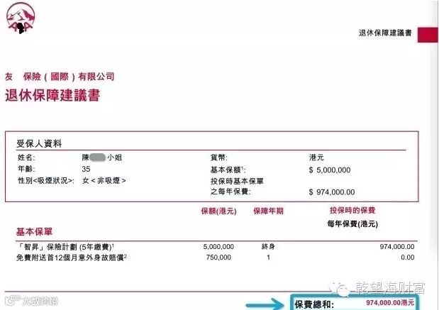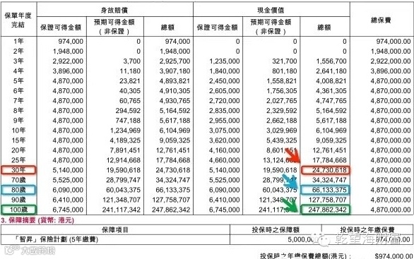 马先生的隽升保单仅需缴费五年,每年保费1,106,400美元,五年共计缴费5,532,000美元,此后无需再缴费,收益和保障则伴随马先生终身。