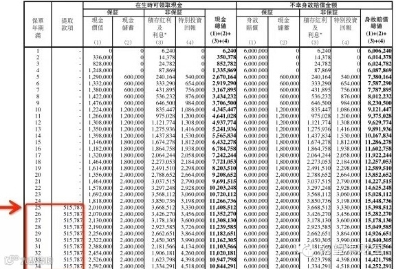 若客戶中途沒有作出提领金额,65岁退保可以一次领取24,730,618;80岁退保可以一次领取HKD66,133,375;100岁满期金可以领取HKD247,862,342