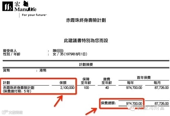 Manulife宏X: HKD335,953/年,回报率: 约5.15倍