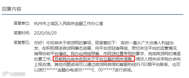 其实早在六月初,微贷网维权群中就传出“将要被立案”的声音。六月中旬,在浙江政务服务网上涌现出大量出借人“反对将微贷网立案”的信件。
