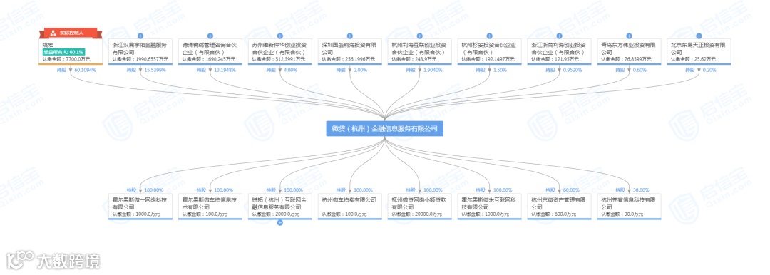 微贷网此前公开融资信息显示,其背后股东有汉鼎宇佑、嘉御基金、国盛金控等企业。当前,启信宝股权信息显示,微贷(杭州)金融信息服务有限公司是微贷网运营主体,注册资本约1.28亿人民币,法定代表人为微贷网创始人兼CEO姚宏。