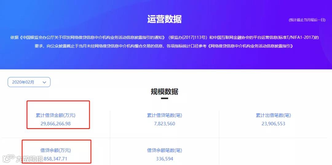 今年2月18日,微贷网对外宣布停止兑付利息,微贷网官网数据,截至2020年2月,借贷余额85.83亿元,累计借贷金额2986.63亿元;当前出借人数量11.55万人,当前借款人数量31.5万人,逾期率为0。