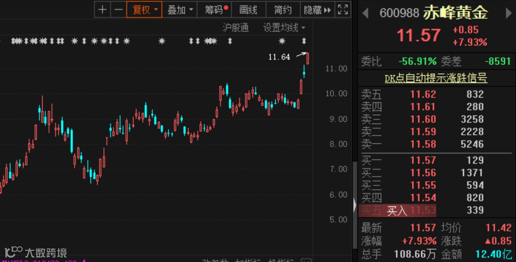 由于黄金预期产量的大幅增加,赤峰黄金本周接连向上突破,创近4年来新高,今年以来累计上涨逾130%。信达证券表示,基于公司黄金产量未来两年大幅增长带来的成长性和业绩弹性,目标价有5月刚刚给出的9.79元大幅提升至17.88元,提高了83%,而按今日收盘价11.57元计算,仍有约55%的空间。