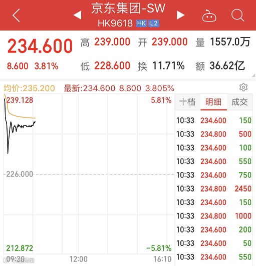 6月18日,京东集团在港交所正式挂牌交易,上市代号为“9618”,此次发售了1.33亿股A类普通股。