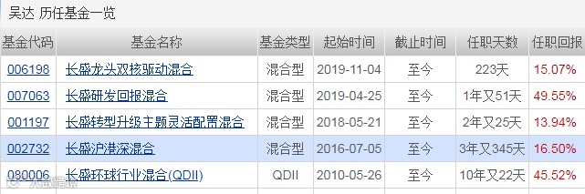 数据显示,吴达管理的长盛研发回报基金成立于2019年4月,该基金成立以来16个月的收益率为50%,年化收益率高达42%,而其管理的另一只A股基金的年化收益率也超过25%,完全秒杀了吴达管理的长盛环球混合基金不足4%的年化收益率。