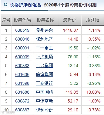 吴达也管理长盛沪港深混合基金,作为一只既投港股也投A股的基金,该基金披露的2020年第一季度报告显示,长盛沪港深混合基金的前十大重仓股清一色为A股的股票。