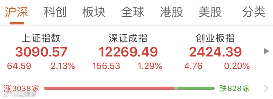除了券商股,今天整个大金融板块都处于进攻的态势,在大金融的发力下,今日沪指收盘大涨2.13%,创下5个半月来新高,指数逼近3100点大关,两市成交额突破万亿大关。