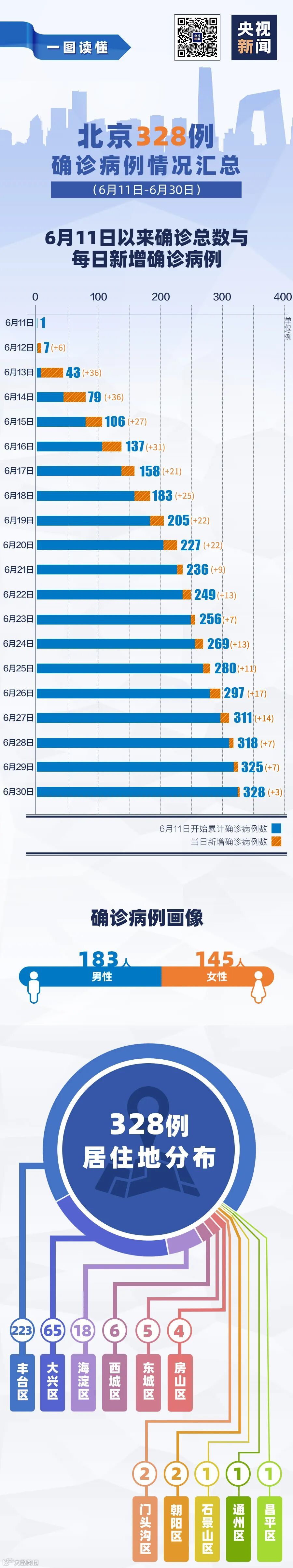 6月11日至6月30日,北京累计确诊病例328例,这些病例分布在哪里?北京目前有哪些中高风险地区?一图读懂。