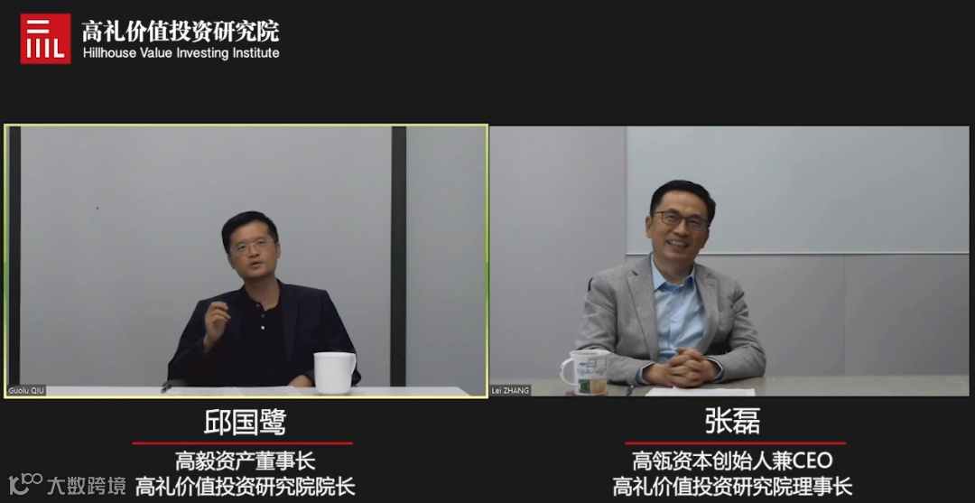 6月21日,在高礼价值投资研究院在线公开课上,高瓴资本创始人兼首席执行官张磊与高毅资产董事长兼CEO邱国鹭进行了一场精彩对话,主题是“论一个投资人的自我修养”。