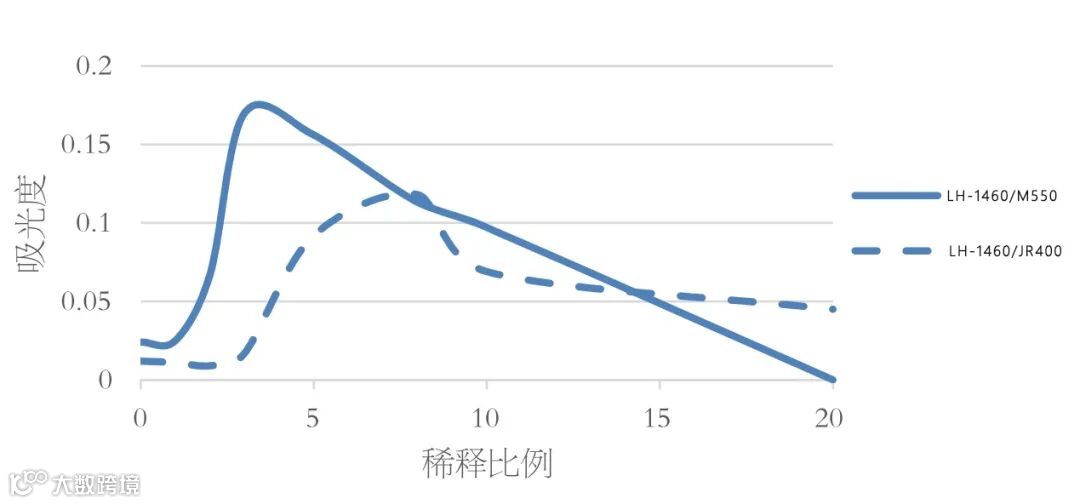动态絮凝曲线结果如图所示。对比分析,LH-1460/JR400对照组合的絮凝起始于起泡阶段(稀释至20%~50%)后期,在冲洗阶段(稀释5%~20%)初期达到最高强度后缓慢降低,并在整个冲洗阶段持续存在。持续的絮凝产生,在提供湿滑的湿发手感的同时,也会给消费者造成冲洗不干净的感觉。
