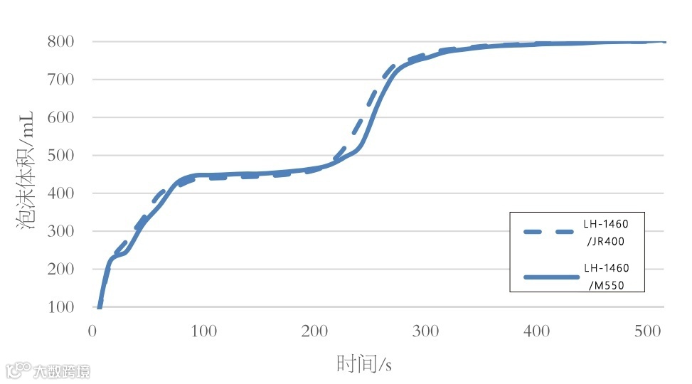 整体而言,LH-1460/M550聚合物组合在泡沫中期能够起到增泡的效果,这个时间段也是消费者所能感知到的区间,其余阶段与对照组合相近。