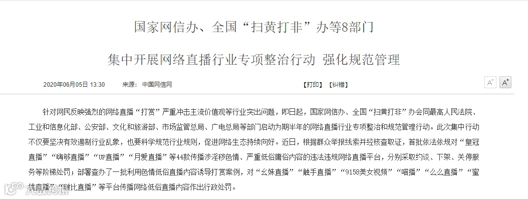 针对违法违规网络直播平台开展专项整治,遏制行业乱象,督促企业落实主体责任,最终目的是为了促进行业健康有序发展。国家网信办、全国“扫黄打非”办将会同有关部门,坚持标本兼治、管建并举,在进行专项整治的同时,科学制定推动网络直播行业高质量发展的管理规则和政策导向,探索实施网络直播分级分类规范,以及网络直播打赏、网络直播带货管理规则,形成激励正能量内容供给的网络主播评价体系,严厉打击违法违规直播行为,严肃追究相关直播平台责任,进一步营造积极健康、营养丰富、正能量充沛的网络直播空间。