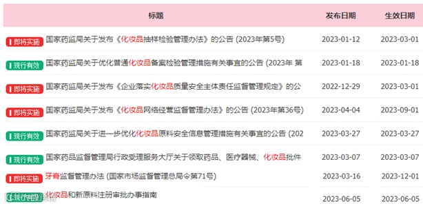 据悉,2023上半年,以国家药品监督管理局为主的国家监管部门发布化妆品相关法规文件及公告共7条,上半年生效法规文件及公告6条,国家局化妆品抽检通告10条,化妆品飞行检查通告5条。