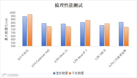 由实验结果可以看出,三羟基硬脂精添加到洗发香波中时可以改善头发的梳理性能,提升洗发体验感。