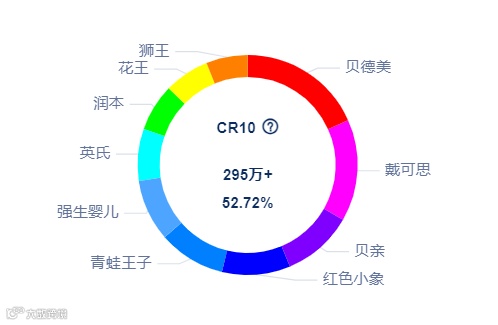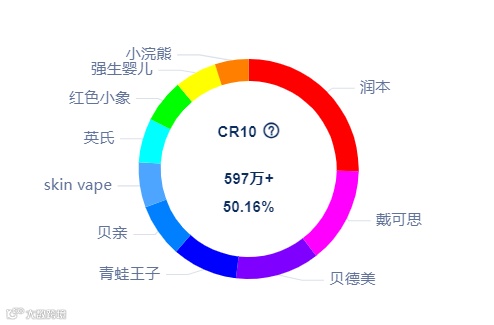 品牌分布方面,2023年第2季度婴童洗护品牌前十排位变动较大,市场竞争格局尚未稳定,排名前三的品牌分别是润本、戴可思、贝德美,其中润本飙升迅猛,从第1季度的第8名冲刺到第1名,此外品牌skin vape、小浣熊冲进前十,具备较强的竞争实力。