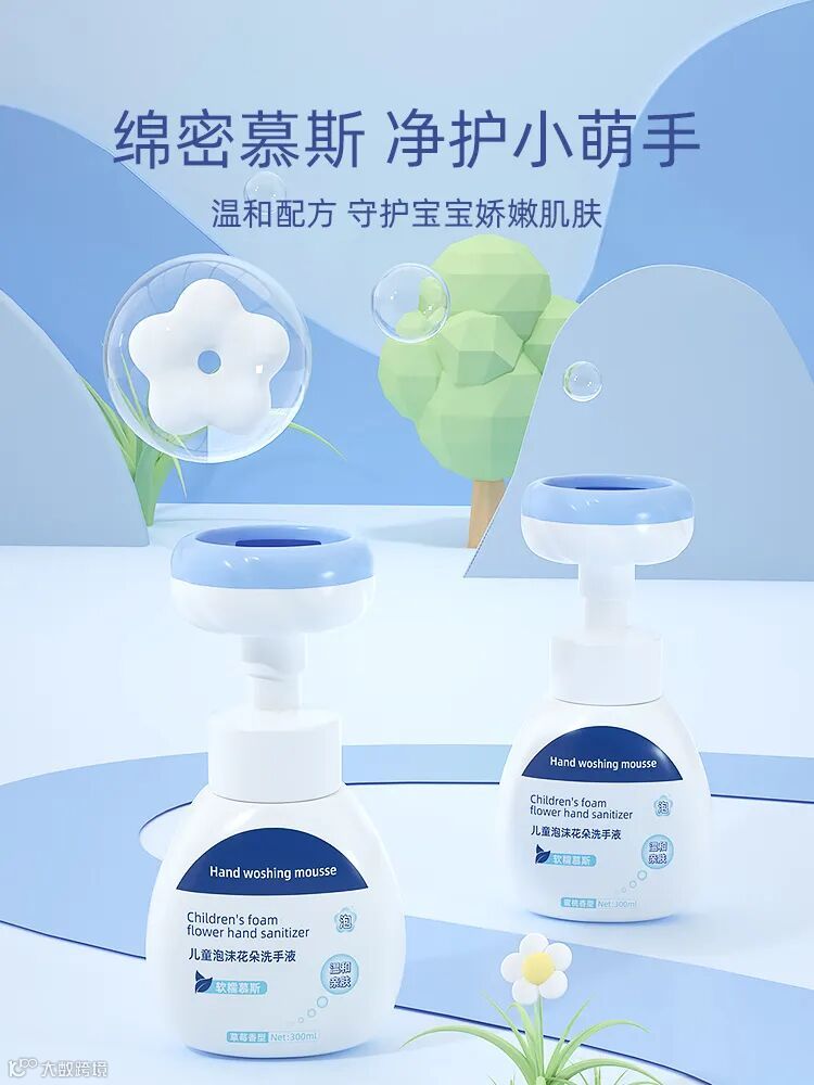 比如品牌谜彩堂推出的儿童慕斯泡沫花朵洗手液,采用纯净水、月桂醇醚硫酸钠、脂肪醇醚磺基琥珀酸二钠盐等成分,产品为软糯慕斯质地,温和亲肤,一按就能出现花朵泡沫,兼具创意与趣味性。