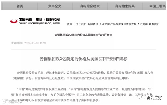 回溯事件,5月30日,一家名为云铜集团的企业发布董事会消息称,美国品牌持有公司与云铜集团法律事务委员会品牌投资收购案未次会议在香港结束,双方签署了收购法律文件,云铜集团最终以43.7亿美元受让美国公司持有的全部《云铜》商标知识产权。