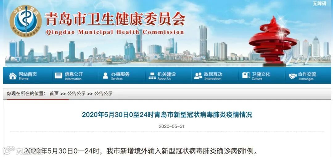 据青岛市卫健委消息,30日0时至24时,青岛新增1例境外输入新冠肺炎确诊病例。患者张某某,男,20岁,中国籍,河南平顶山人,在美国留学。