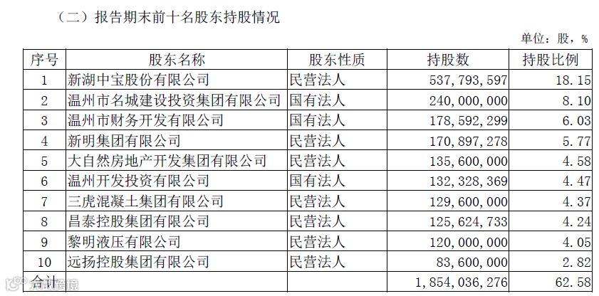 可以看到,涉房信贷违规就是罚单案由中的重要一项,而从温州银行年报披露的股权结构看,截至2019年末,温州银行的前十大股东有新湖中宝(持股18.15%)、温州名城建投(持股8.1%)、新明集团(持股5.77%)、大自然房地产开发集团(持股4.58%)、三虎混凝土集团(持股4.37%),主业多为房地产开发和建筑行业。
