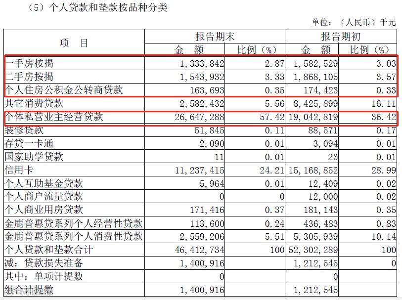 具体来看,公司金融业务上,存款余额占存款总额的70.49%,比上年初增长增幅10.54%;公司业务贷款余额755.55亿元,占各项贷款总额的61.95%,比年初上升40.99%。公司存款结算客户数14,958 户,较上年末增加1,242 户,增长9.06%;法人贷款户数2,433 户,较上年末增加862 户,增长54.87%。在个人贷款结构中,比重最大的是经营贷,占比57.42%。