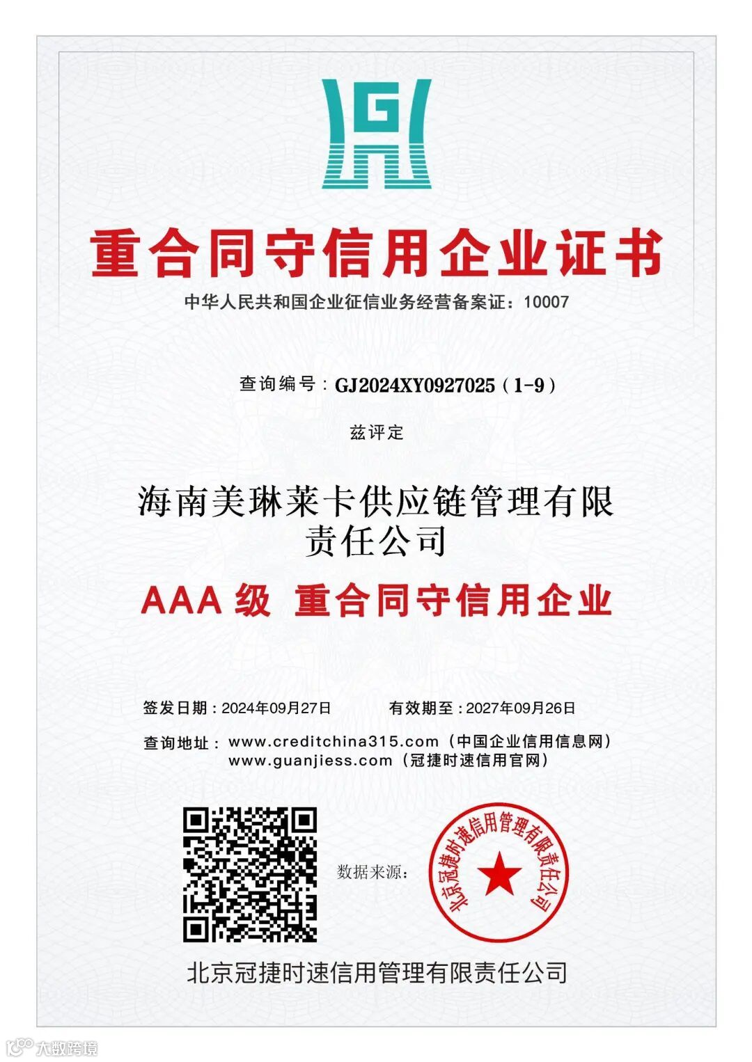 美琳莱卡供应链管理有限公司,成立于2024年,总部位于海南海口,以其前瞻性的数字化科技创新,构建起一个融汇“产品+数字化+金融”元素的新型销售服务平台。平台以驱动实体企业服务升级、销售增速、成本优化,助力其迈入数字化转型快车道为己任,正逐步塑造中国数字化经济发展新模式。公司融合线上线下零售的新型供应链管理企业。