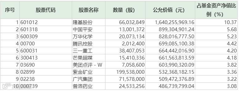 从重仓股来看,谢治宇仓位主要集中在大盘蓝筹股以及头部互联网企业。其中仓位最重的是隆基股份,占比高达10.37%。