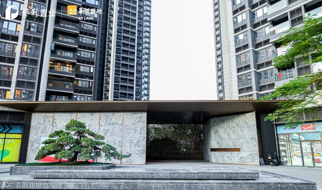 二进· 酒店化礼仪大门:约30米开阔门庭,浪淘沙石材与金属格栅勾勒光影,尊崇感由此而生。