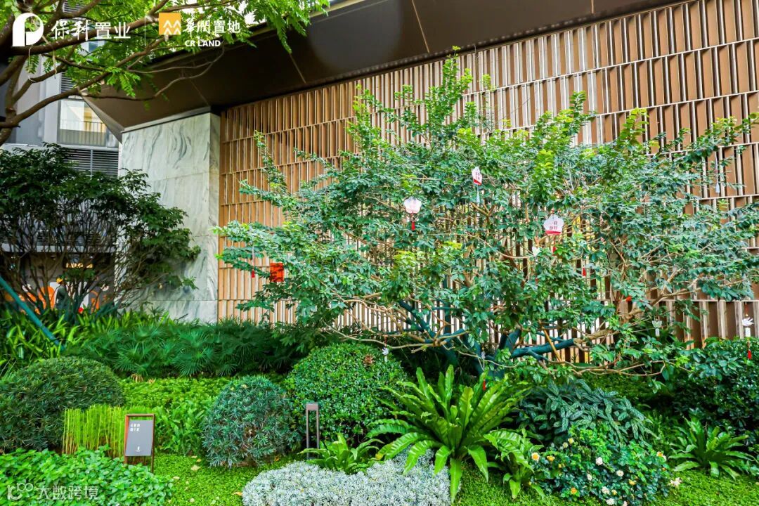 六进·花园感酒店入户:单元门前,造型铁冬青红果吉祥,精致花境四季常新,这一隅的芬芳与雅致,是保利华润静安府高端品质的细微体现,只为匹配您独一无二的品味与身份。