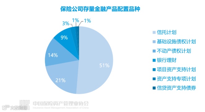 整体上,金融产品投资以集合资金信托计划(51%)、基础设施债权投资计划(21%)和不动产债权投资计划(14%)为主,三者合计规模占比约85%,是保险资金金融产品配置的主要品种。