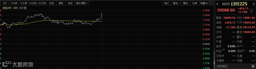 日经指数表现更是抢眼,在消息公布之后,涨幅扩大至2%以上。