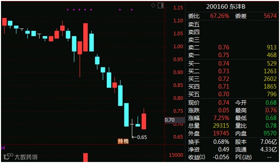 事实上,早在4月1日,东沣B即因股价连续10日低于面值,首次发布退市风险公告,随后更连跌3个交易日,至4月7日才勉强回到面值。而且也仅仅保持了一天,就重新迈入下跌通道。