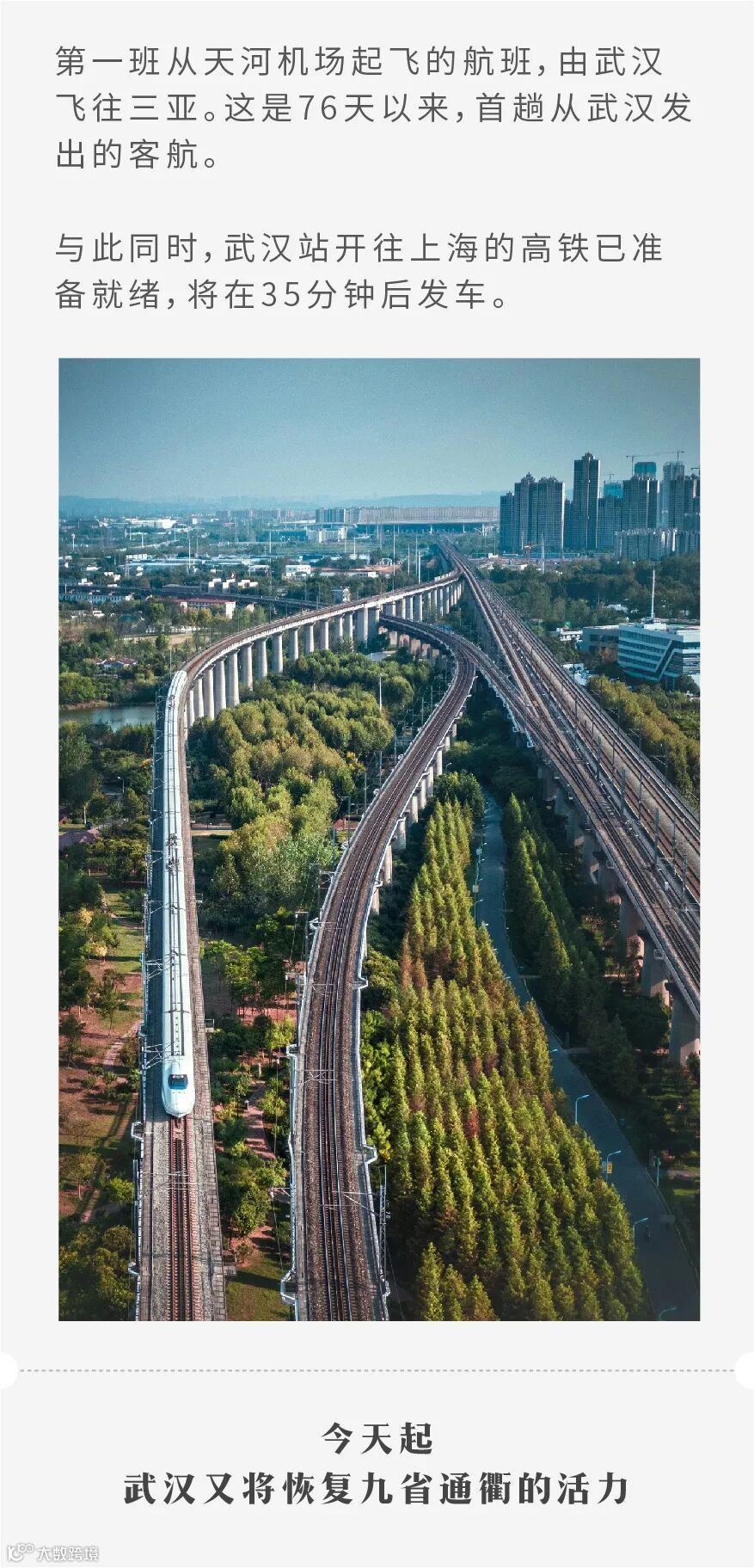 4月8日,武汉正式解除离汉离鄂通道管控。这一天,距离1月23日武汉关闭火车站、机场等离汉通道,过去了整整76天。