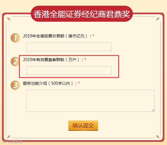 Q:香港全能证券经纪商君鼎奖所要填写的“有效覆盖客群数”指的是什么?