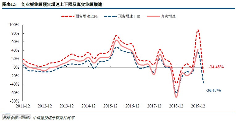 创业板一季报预告业绩大幅下降,龙头公司保持稳健。4月10日,创业板披露了一季度业绩预告。创业板整体预告利润增速区间为-36%~-14%,均值为-25%。其中500亿市值以上的创业板龙头公司业绩保持稳健增长,市值小于50亿分组业绩下降非常明显。创业板指成分股2020Q1预告利润增速为2%,总体仍有望保持正增长,龙头公司抗风险冲击能力更强。
