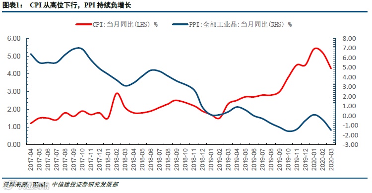 从经济运行来看,CPI年内下行趋势确认,PPI通缩压力加大。3月CPI指数重回5以下,猪肉价格稳定并开始小幅回落,我们认为其年内下行趋势基本确认。3月PPI同比-1.5%,低于市场预期的-1.1%。受疫情影响内外需萎缩,我们预计后续其将持续维持负增长,工业企业利润承压。