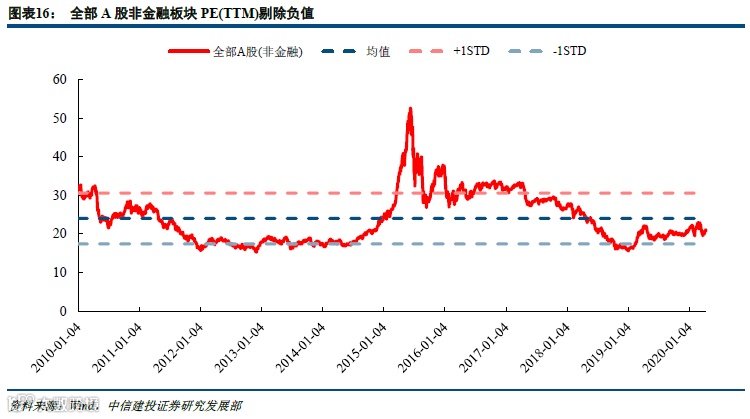 A股整体收涨,全A估值回升。全部A股板块的PE(TTM)由上周的14.11回升到14.30,全部A股剔除金融的估值由上周的20.38回升到20.70,目前全部A股和全部A股非金融的估值分别处于2010年以来的38.2%和43.3%分位,仍处于历史中位数水平以下,本周全A板块估值水平回升。