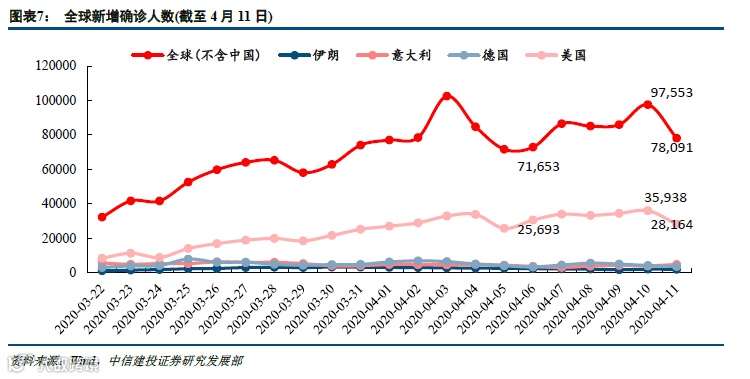 美国新增在前期下降后又出现反复,全球(不含中国)新增确诊在美国带动下出现反弹,巴西新增继续提升。美国最近5天疫情反复,4月110日新增确诊人数高达3.6万,重新创历史新高,但4月11日又回落到2.8万。最为值得关注的是部分受控国家出现“复阳”状况。韩国中央防疫对策本部通报,截止4月10日,韩国累计出现91例新冠患者在康复并解除隔离后的检测中再次呈阳性。这一数据较前一天增加17例,占当日总治愈人数比例为1.28%。美国疫情出现反复,受控地区出现复阳,海外生产秩序在6月前能常态化已经是最乐观的情况。