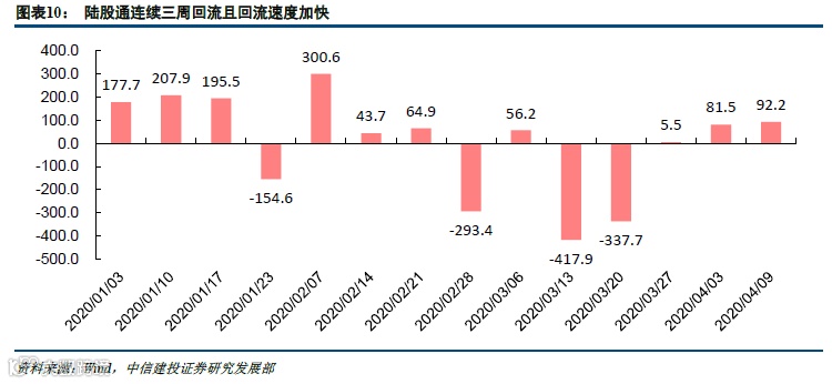 随着美联储政策发力,海外市场企稳反弹,外资最近三周持续回流,本周净流入高达92.2亿,在周五因复活节假期休市的扰动下本周净流入仍然高于上周。但根据我们在海外部分的分析,标普500反弹后估值与其盈利下调疫情反复的基本面并不相符,其后续继续创新高的可能性较小,外资持续加速回流的态势持续性存疑。值得注意的是,市场成交金额维持在6000亿左右的水平,从3月23日以来本轮小反弹中成交量并无提升,且融资融券余额在过去四周持续萎缩,当前市场仍然是存量资金在博弈。本周一个值得欣喜的积极变化时新增两融余额在连续四周下行后首次转正,后续持续性有待观察,且并不改变我们对目前仍处存量博弈的判断。