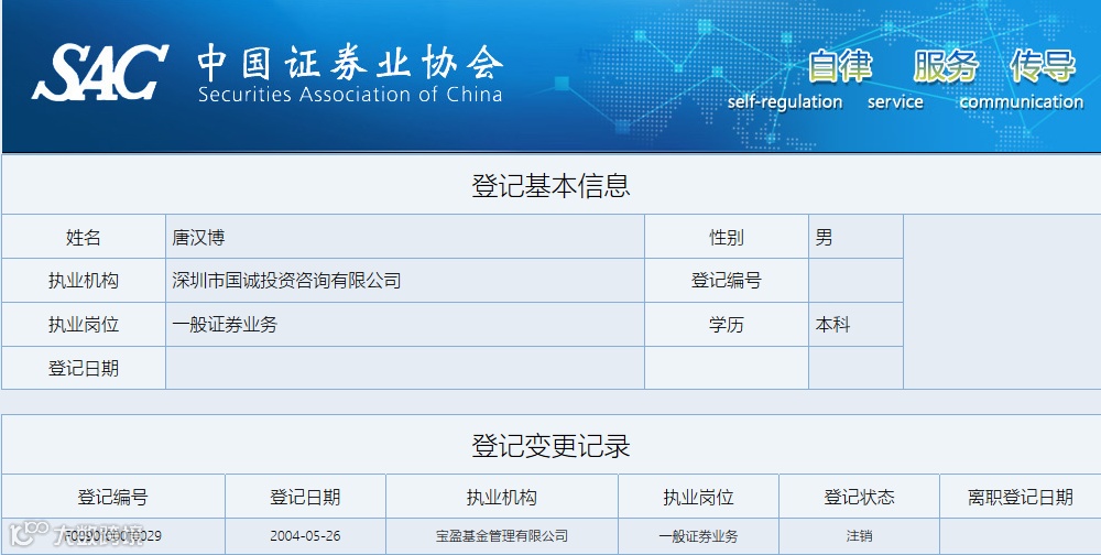 公开信息显示,唐汉博是一名“70后”,曾有多年机构从业经历,先后担任过联合证券有限责任公司基金经理助理、深圳宝盈基金管理公司行业研究员、深圳国诚投资咨询公司研发总监等职务。