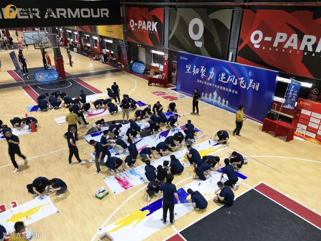 当天下午,公司在南山Q-Park篮球馆组织了“坚韧聚力、逆风飞翔”冲刺下半年团建拓展活动。