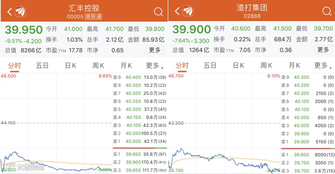 针对两家大行的公告,投资者选择“用脚投票”:4月1日,汇丰控股(00005.HK)开盘大跌,最高跌幅近10%,渣打集团(02888.HK)当日最高跌幅也超过7%,“愚人节”成真。