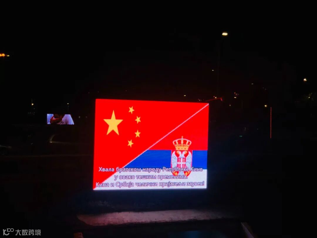 自中国援助塞尔维亚医疗专家组3月21日晚抵达塞尔维亚后,贝尔格莱德标志性建筑点亮了中国红。近日,记者在尼古拉特斯拉国际机场看到,机场出入口的大屏幕上显示五星红旗、中塞国旗交融在一起的画面,上面写着:“感谢中国,患难见真情,铁杆盟友,中塞友谊地久天长!”